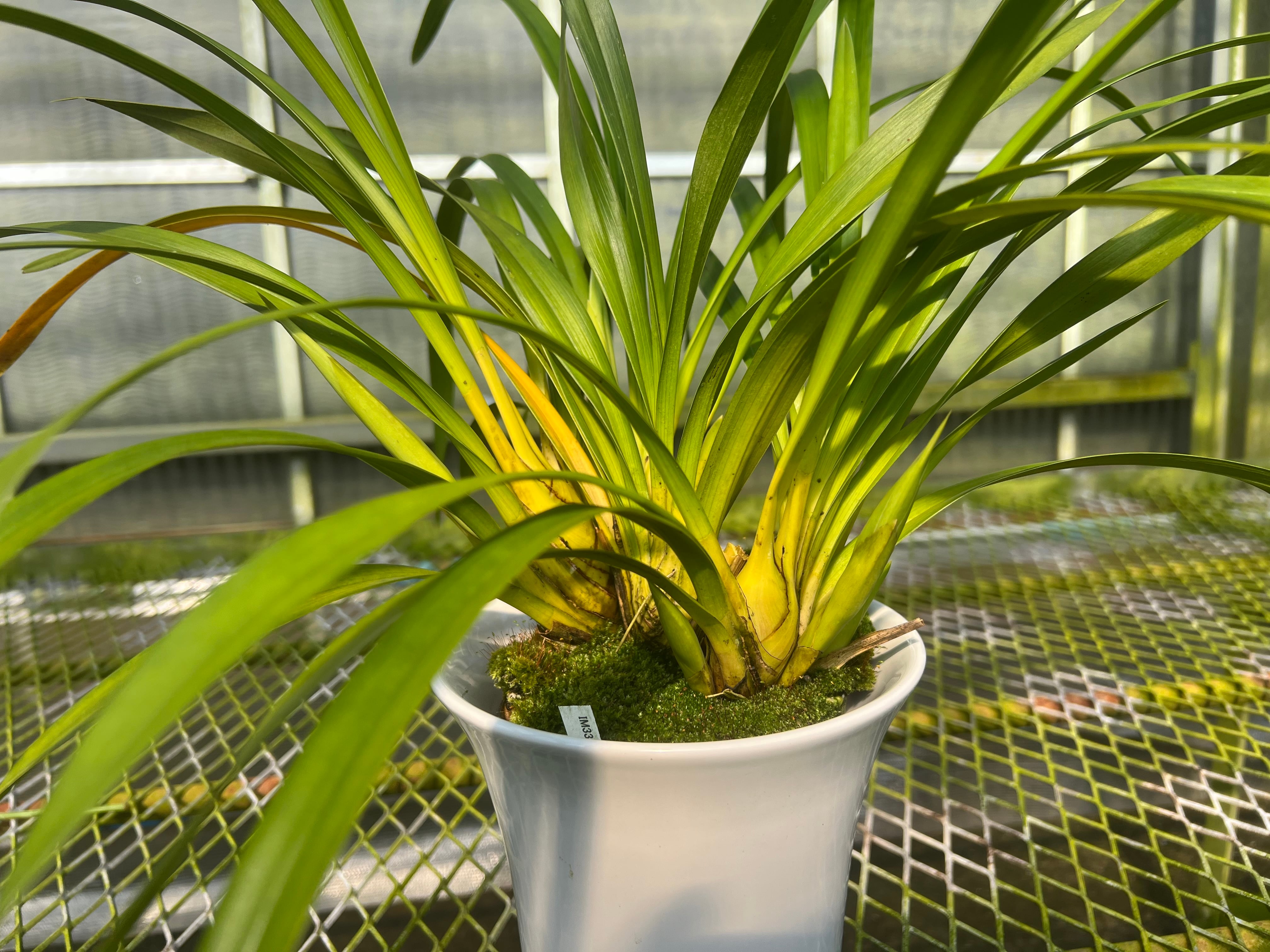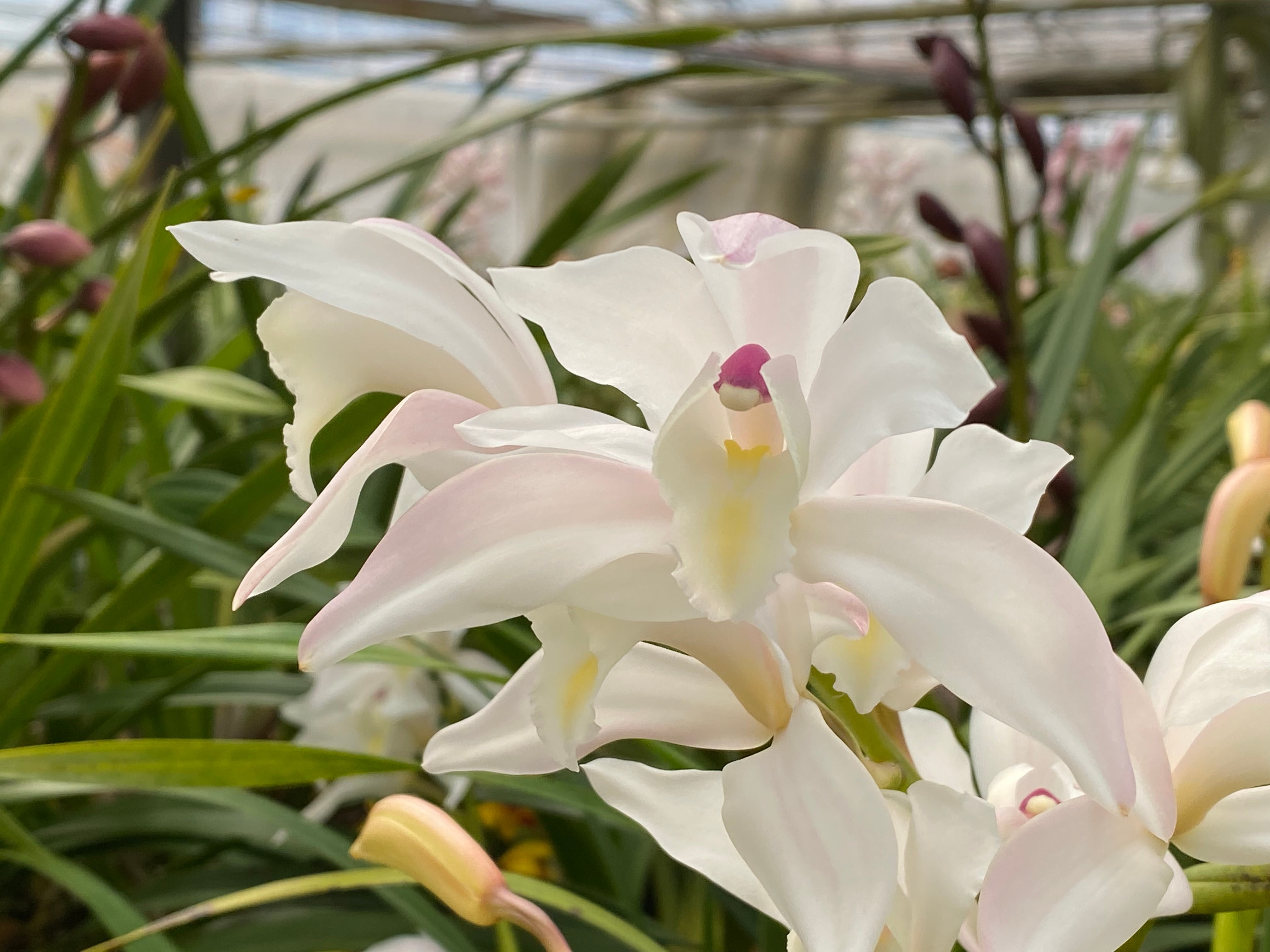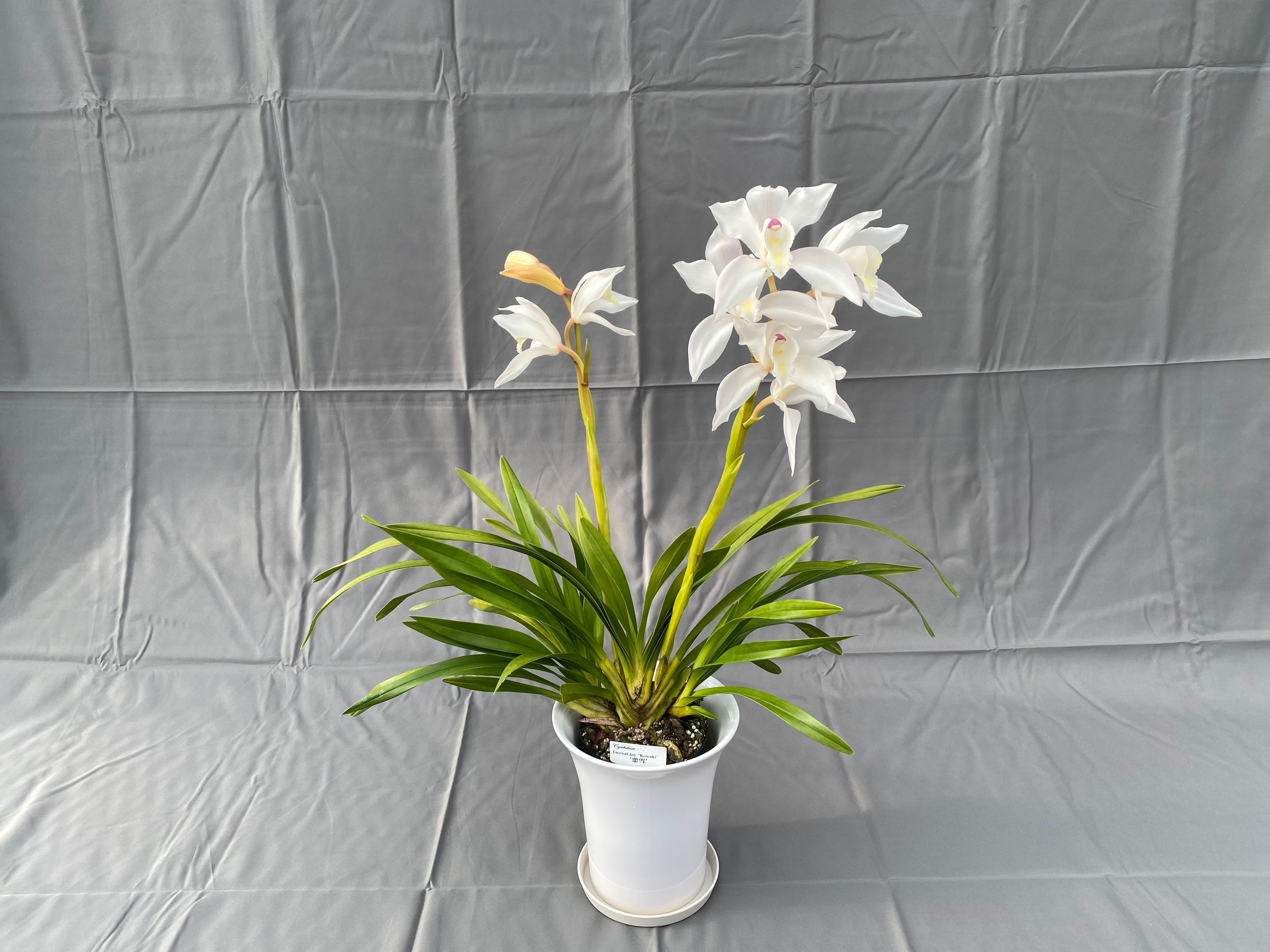 Cym. Eternal Joy '恋雪'4号花付き株/5号陶器鉢入り/家庭で楽しむために開発した新型シンビジウム/庭植えも可能